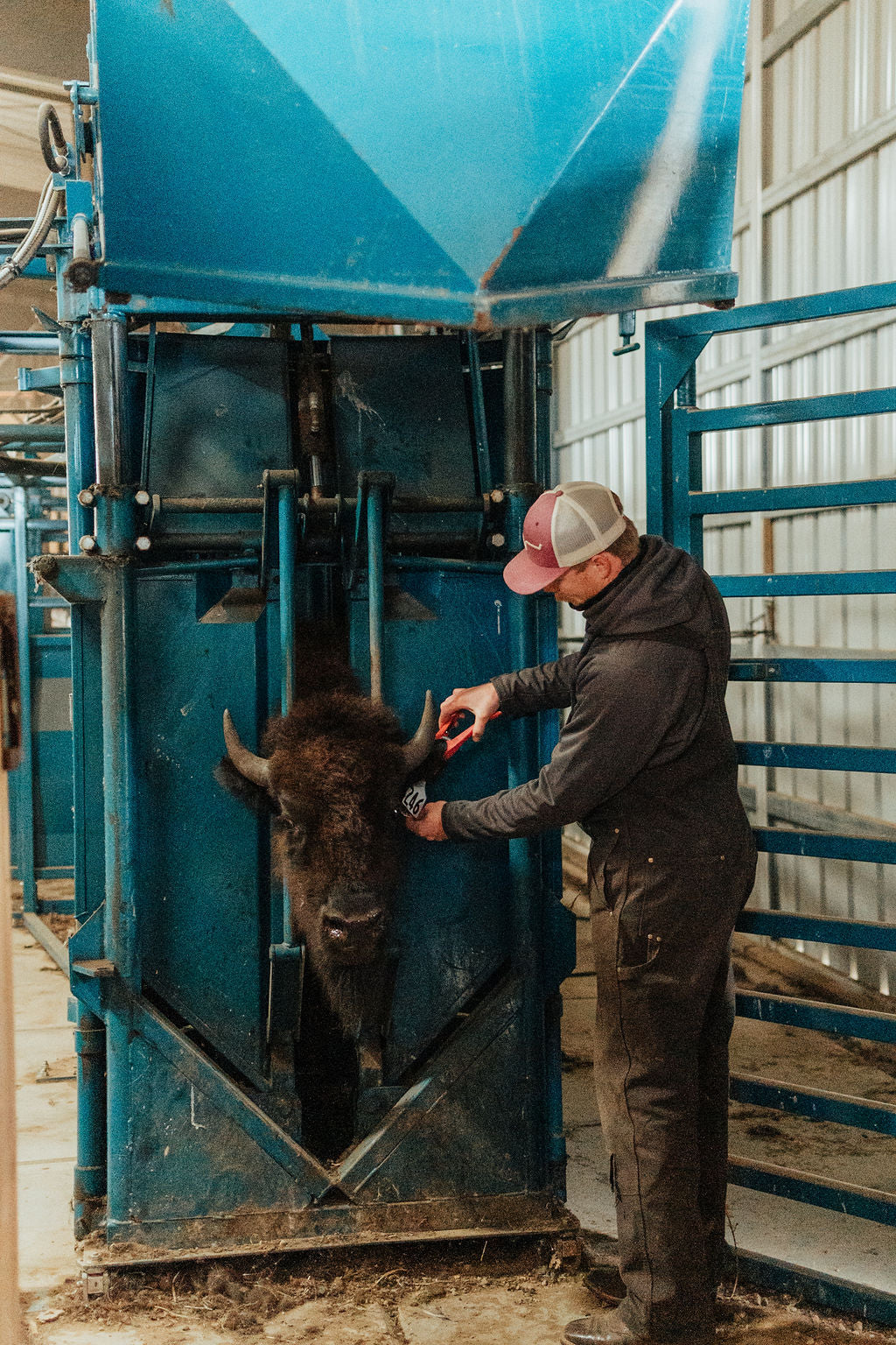 The vision was originally to have both species, elk and bison, coexisting on the farm. However, challenges with chronic wasting disease determined that an exclusive bison operation was the way to go. After several years of transitioning the handling systems on the farm and slowly building a starting herd of bison, the final elk left the farm.
